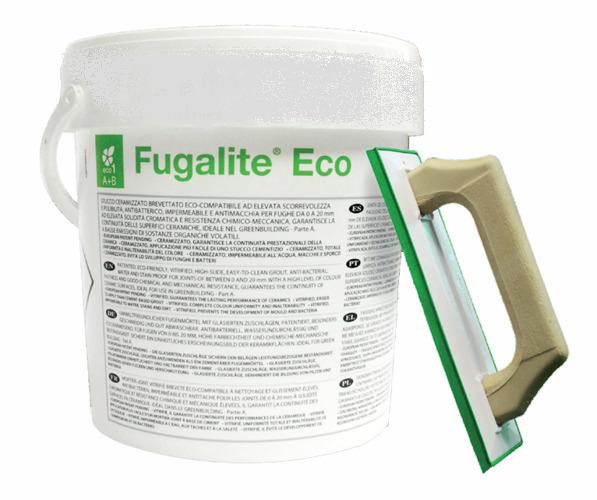Fugalite Eco to płynny materiał ceramiczny do jednolitego sponowania płytek ceramicznych i mozaiki szklanej. Fuga dostępna jest w 30 kolorach, jakie zawierają cztery kolekcje barwne (Classic Colors Design). Ponadto dostępna jest kolekcja Crystal, w której zamiast piasku stosuje się mikroperełki ze szkła pochodzącego z recyklingu (Swarowski Company). W tej kolekcji dostępne są luksusowe spoiny Fugalite Eco Crystal w kolorach: bianco extrafine (gwarantująca zawsze czystość i połysk) oraz neutro (z przezroczystymi mikroperełkami szklanymi specjalnie odbijająca i rozpraszająca światło). Są one polecane szczególnie do spoinowania mozaiki szklanej. Gdy do fugi doda się lśniący proszek w kolorze złotym i srebrnym, powstaje Fuga-Glitter w kolekcji Gold i Silver. Jest ona najbardziej luksusowym produktem z linii Fugalite Eco.