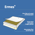 Ermes jest sufitem z fazowaną krawędzią z grupy Design dostarczany z wykończeniem Boreal. Strona dekoracyjna pokryta jest świetlną satynową powłoką malarską. Tył płyty wzmocniony jest matą z naturalnego włókna szklanego. Wszystkie krawędzie są malowane.