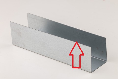 Profil ze specjalnymi podwyższonymi ściankami bocznymi do wykonywania ścian w pomieszczeniach w których występują stropy w wyższych niż standardowe strzałki ugięcia.