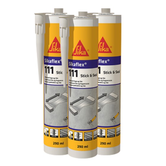 Sikaflex 111 Stick & Seal jest jednoskładnikowym, uniwersalnym klejem i materiałem uszczelniającym o dobrej przyczepności przeznaczonym do klejenia i uszczelniania większości typowych podłoży budowlanych. Może być stosowany wewnątrz i na zewnątrz pomieszczeń.